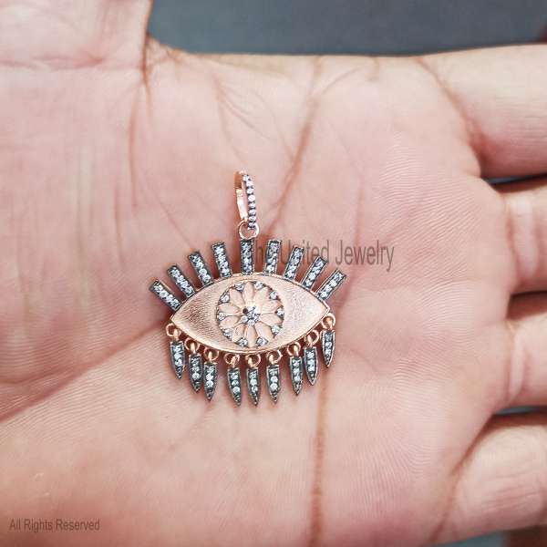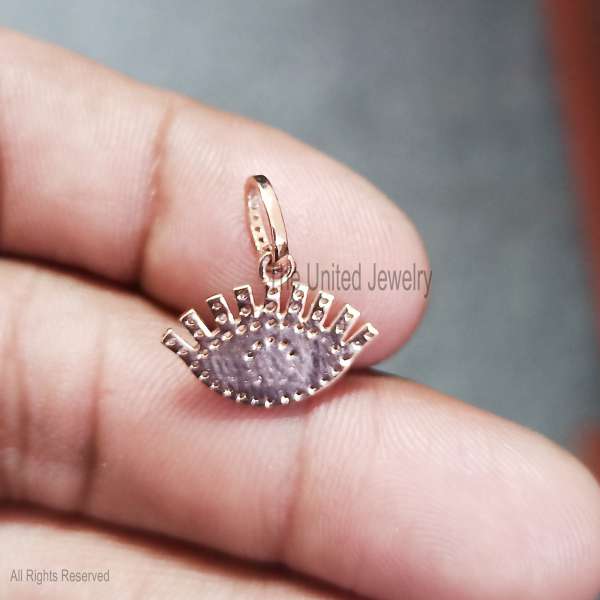 925 Silver Evil Eye Pendant, Diamond Protection Charm, Gold Plated Jewelry