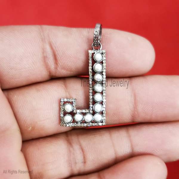 | Elegant 925 sterling silver “J” letter pendant featuring pearl accents with sparkling diamond detailing. A classy personalized piece perfect for everyday wear or gifting.
