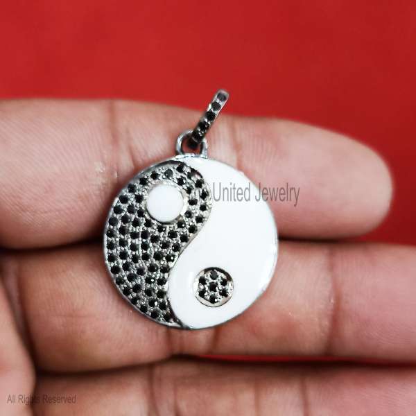 | Stylish 925 sterling silver Yin Yang pendant featuring black & white design with sparkling diamond accents. A symbolic piece representing balance, harmony, and duality.