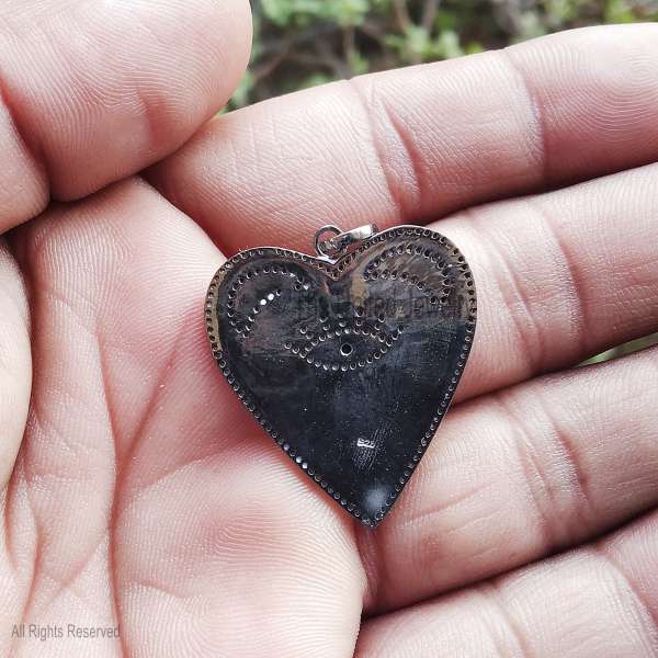 Design: A heart-shaped silhouette featuring a central protective “Evil Eye” motif