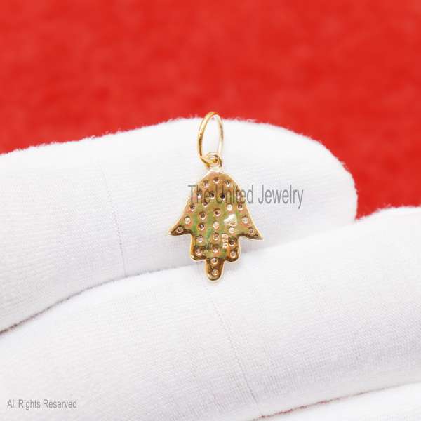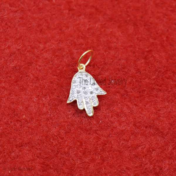 925 Sterling Silver Pave Diamond Handmade Hamas Charm Pendant Jewelry