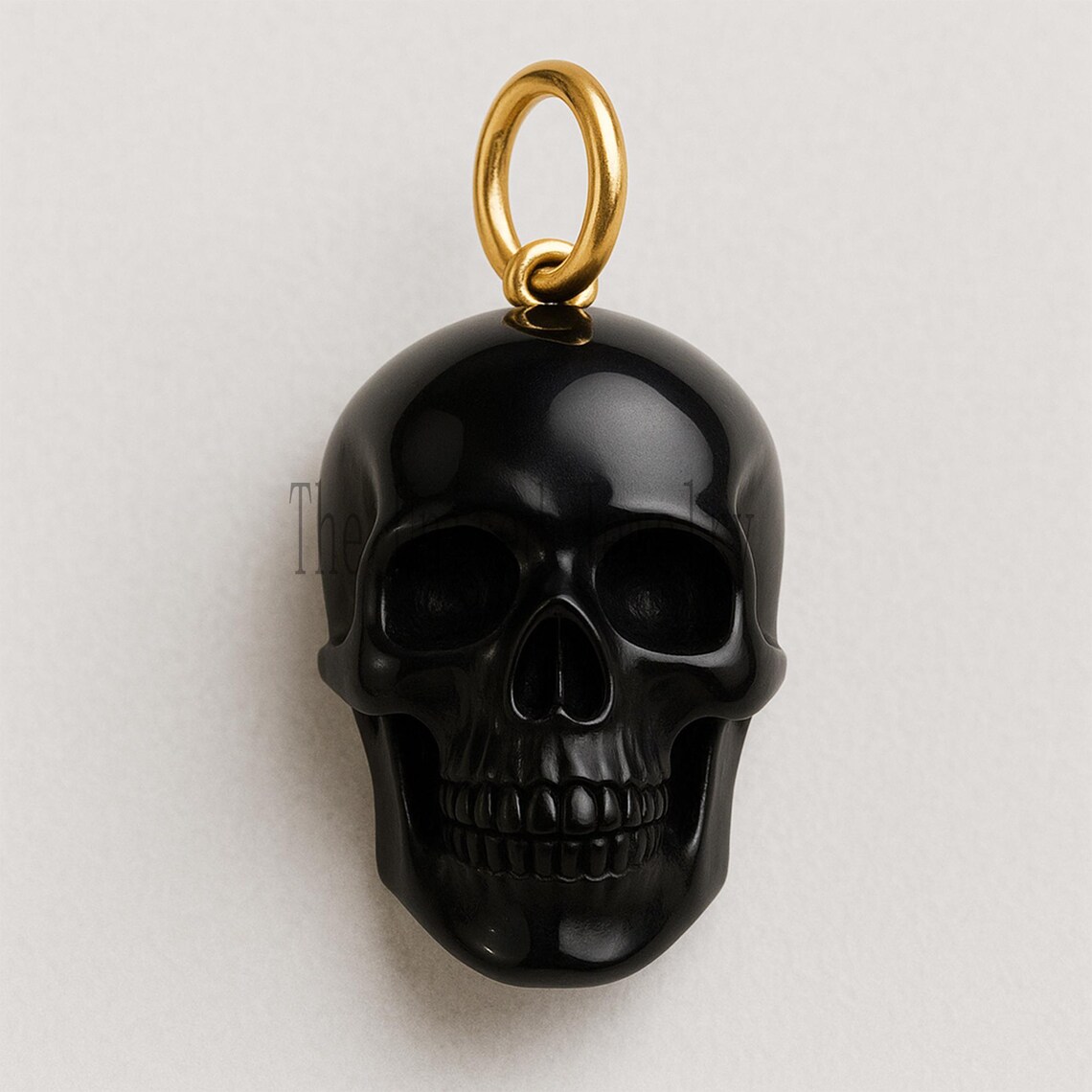 Black Obsidian Skull Pendant with Gold-Plated Jump Ring – Hand-Carved Gothic Amulet