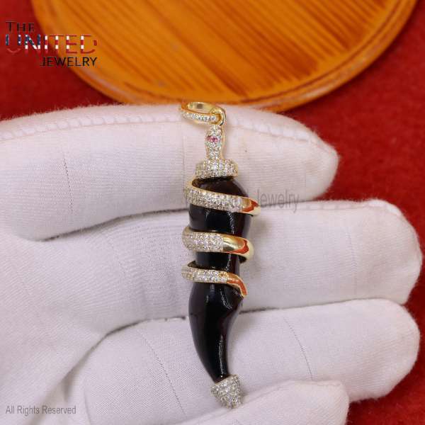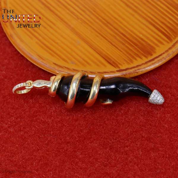 Handmade Italian Horn Sterling Silver With Diamonds and Black Onyx Charm