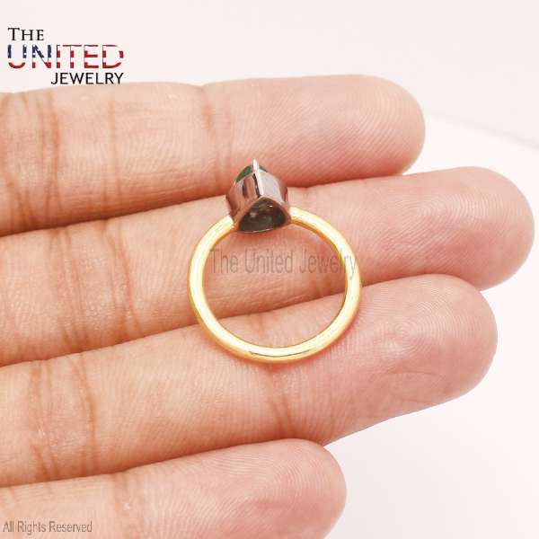 925 Sterling Silver Pear Cut Emerald Halo Ring