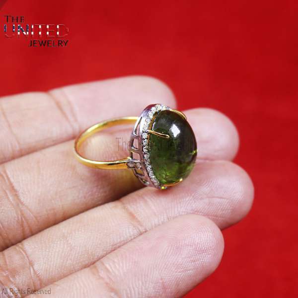 Main Stone: Large Oval Cabochon Green Tourmaline
