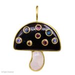 Specification: 14K Gold Gemstone Mushroom Pendant, Handmade Magic Multisapphire Mushroom Pendant, Mushroom 14k Pendant Necklace, Gemstone Mushroom Pendant