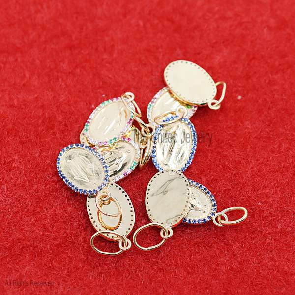 Specification: 14k Gold Miraculous Medal with Multistones Charm, 14k Gold Mother Marry Charm, 14k Gold Christ Charm Pendant