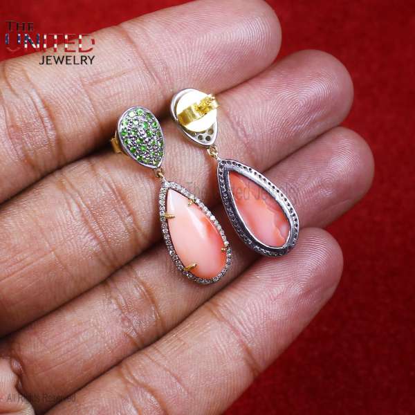 Specification: 925 Sterling Silver Handmade Designer Pave Diamond Gemstone Earrings Jewelry, Handmade Silver Tsavorite Gemstone Dangles Earrings Jewelry