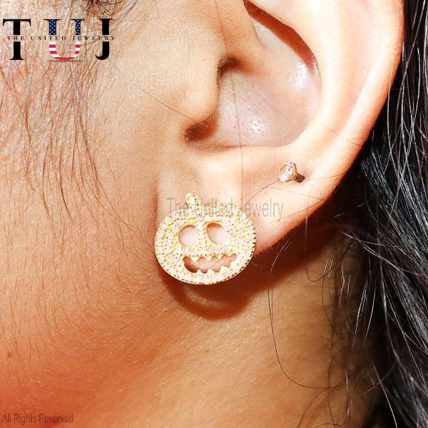 Specification: 925 Sterling Silver Handmade Pave Diamond Pumpkin Studs Earrings For Women
