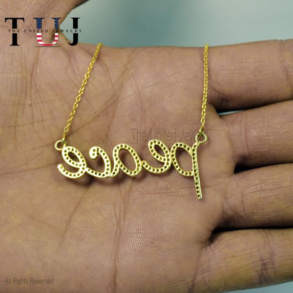 Specification: 925 Sterling Silver Pave Diamond Handmade PEACE Charm Necklace Jewelry For Women