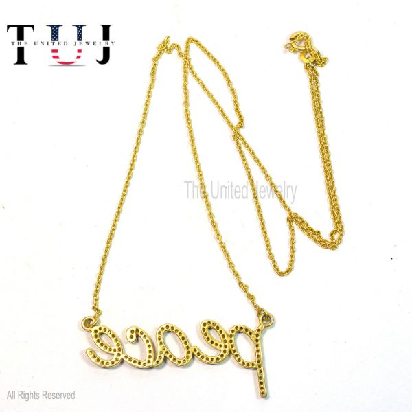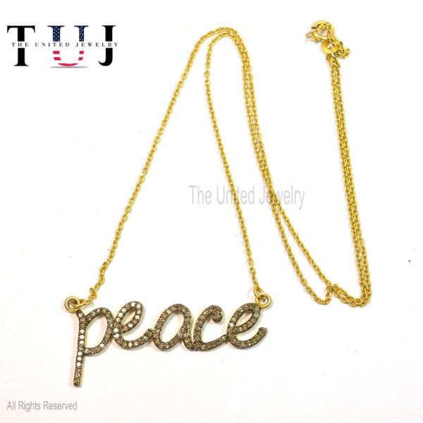 925 Sterling Silver Pave Diamond Handmade PEACE Charm Necklace Jewelry For Women