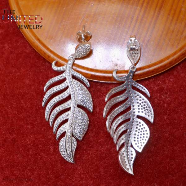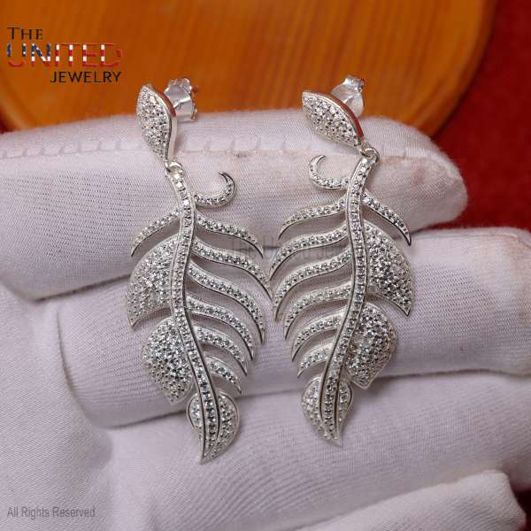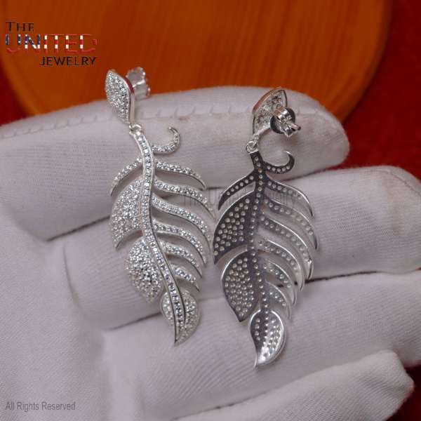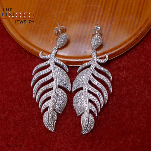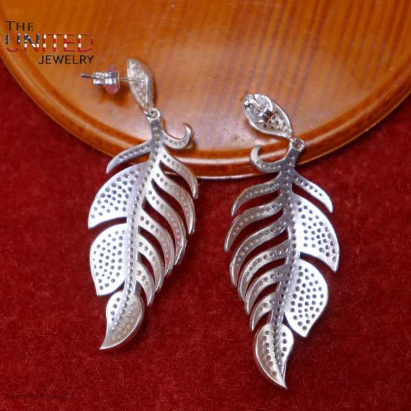 Specification: 925 Sterling Silver Pave Diamond Leaf Dangle Earrings, Handmade Pave Diamond Leaf Dangle Earrings Jewelry For Women, Leaf Dangle Earrings