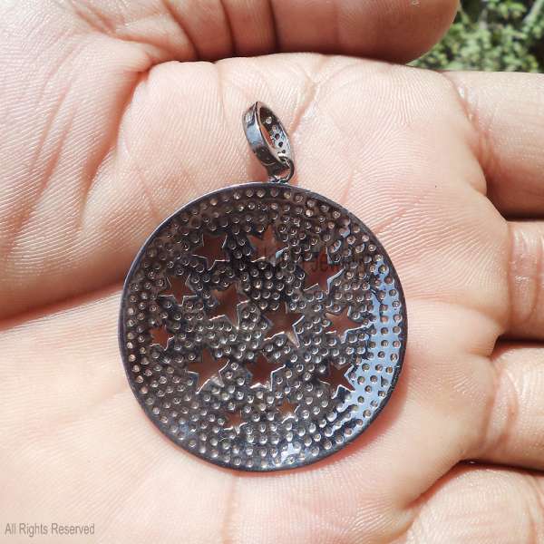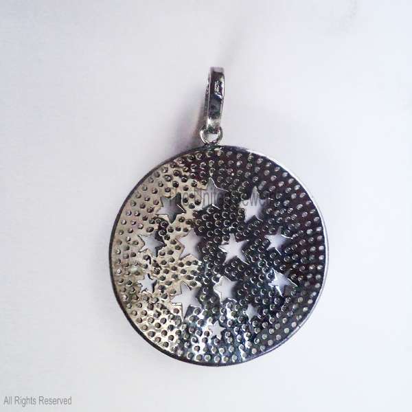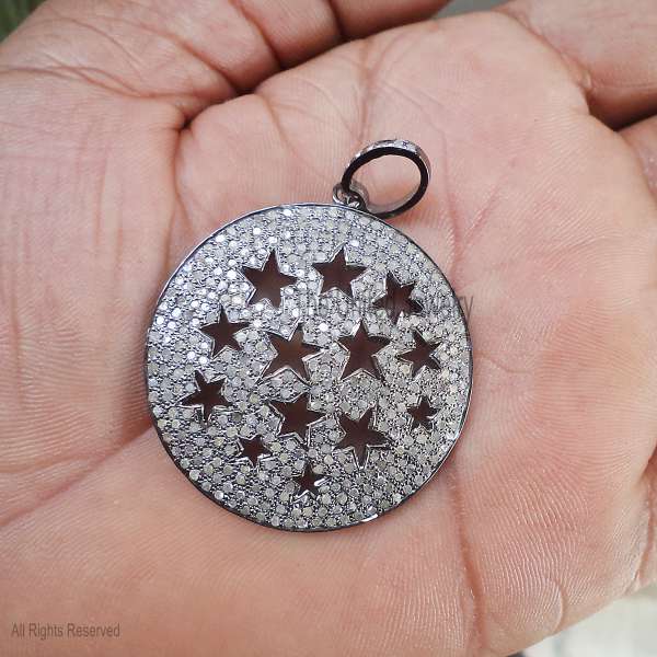 Specification: 925 Sterling Silver Pave Diamond Silver Star Disc Pendant Jewelry, Silver Star Disc Pendant, Diamond Disc Star Pendant, Handmade Disc Jewelry