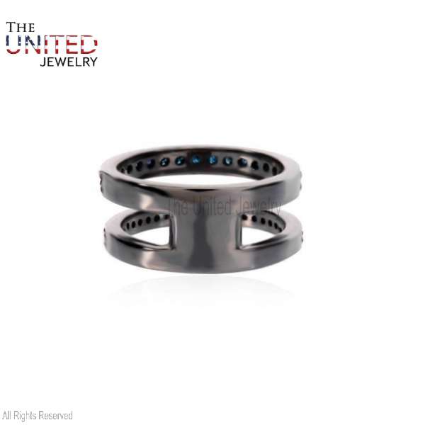 925 Sterling Silver Pave Diamond With Blue Topaz Handmade Band Ring Jewelry For Women’s
