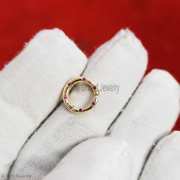 9K Gold Round Ruby Charm Holder, 9K Enhancer Lock, 9K Gold Push Lock, 9K Gold Snap Lock, Gold Jewelry, 9K Gold Clasp Lock