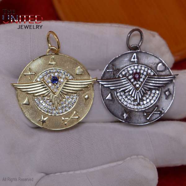 Specification: Black Rhodium Plating 925 Sterling Silver Pave Emerald Eagle Wings Charm Enamel Pendant, Silver Eagle Wings Charm Pendant, Handmade Charm Jewelry