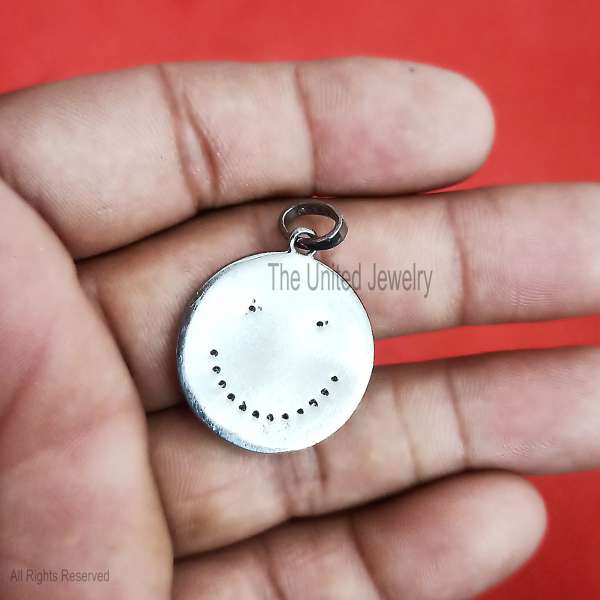 Specification: Enamel Handmade Sterling Silver Smiley Face Shape Pave Diamond Pendant Jewelry, Silver Emoji Enamel Pendant Jewelry