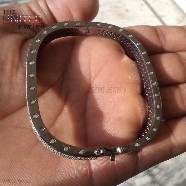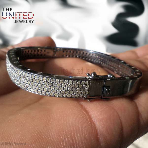 Specification: Handmade 925 Sterling Silver Full Pave Diamond Designer Bangle Jewelry For Women