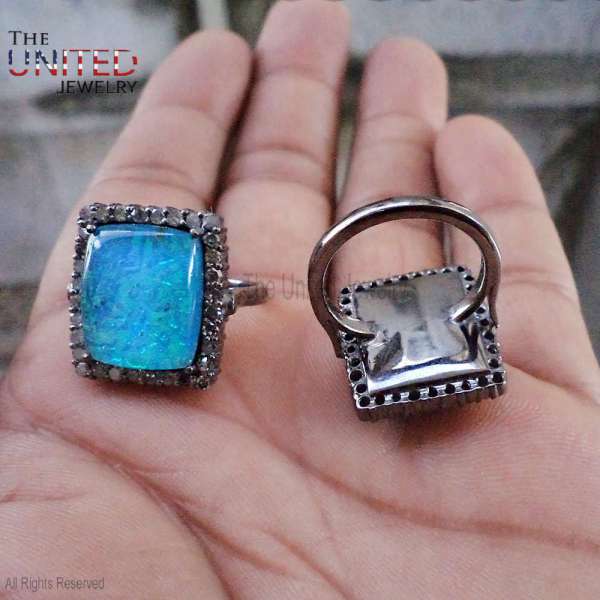 Specification: Handmade 925 Sterling Silver Pave Diamond Opal Ring Jewelry, Opal Ring, Silver Ring, Diamond Ring