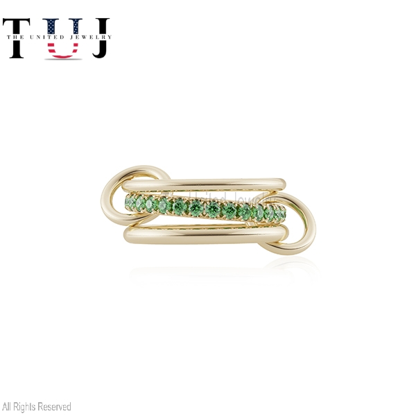 Specification: Handmade 925 Sterling Silver Tsavorite Connector Band Ring Jewelry, Three Finger Connector Ring, Three Connector Band Ring, Link Ring