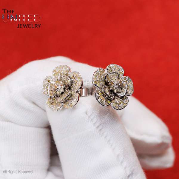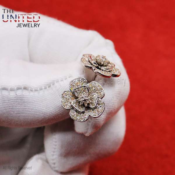 Specification: Natural Pave Diamond Flower Shape Stud Earrings Jewelry, Flower Diamond Stud, Sterling Silver Pave Diamond Stud Earrings