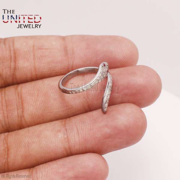 Specification: Natural Pave Diamond Snake Shape Ring Jewelry, Diamond Ruby Snake Ring, Silver Snake Ring Jewelry, Pave Diamond Ring