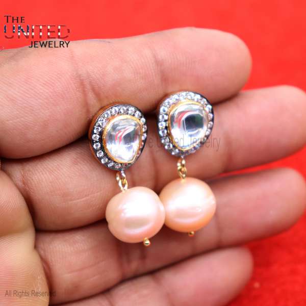 Specification: Natural Pave Diamond Sterling Silver Pearl Dangle Earrings, Silver Earrings, Diamond Silver Earrings Jewelry, Handmade Silver Dangle Earrings
