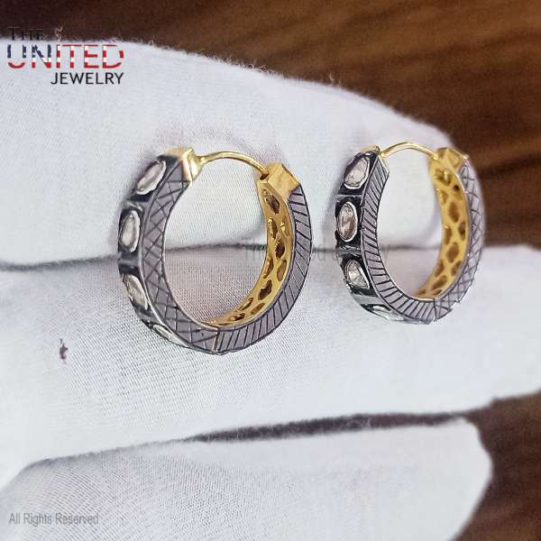 Specification: Natural Polki Pave Diamond Round Hoop Earrings, Rose Cut Diamond Handmade Hoop Earrings For Women’s