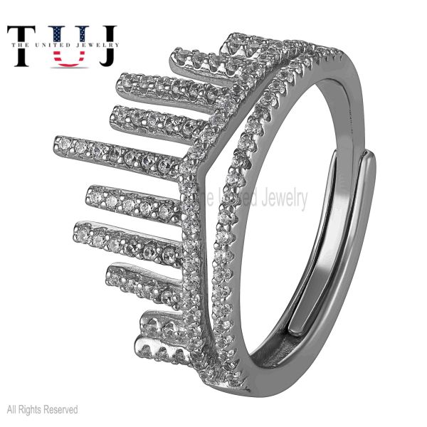 Specification: Pave Diamond Handmade 925 Sterling Silver Black Rhodium Crown Ring Jewelry