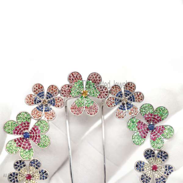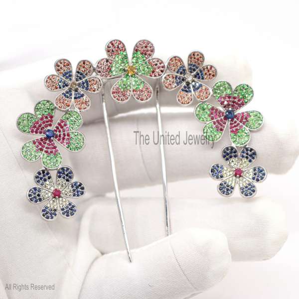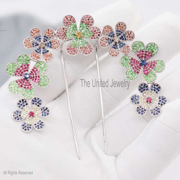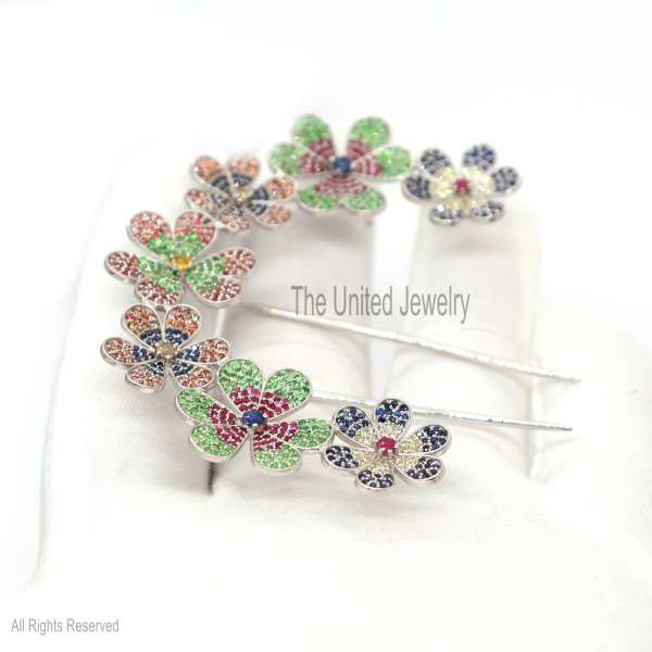 Specification: Sterling Silver Flower Gemstone Hair Pin Jewelry, Hair Pin Lock, Silver Hair Pin Finding Jewelry, Multisapphire Pin