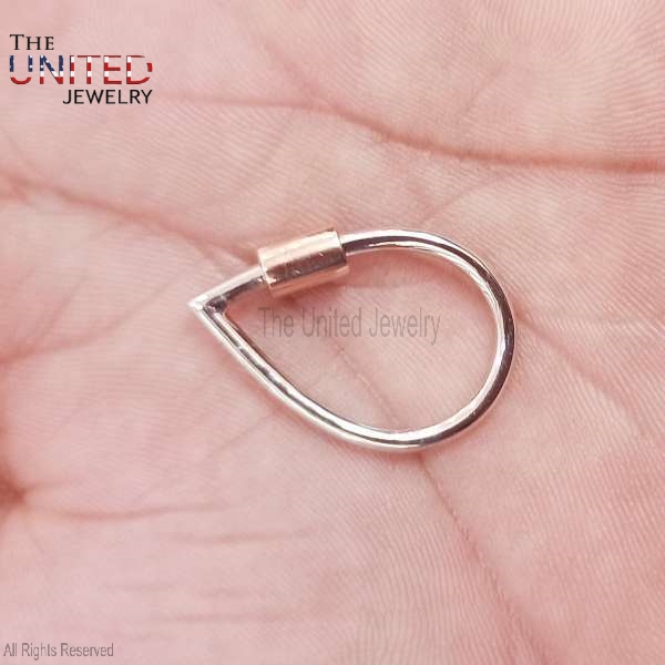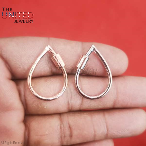 Sterling Silver with 925 Stamp Carabiner Clasp Pear Shape Lock , Silver Screw Necklace Bracelet Holder Clasp Lock, Necklace Lock Jewelry