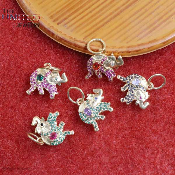 Specification: Sterling Silver Yellow Gold Plating Pave Ruby Elephant Pendant, Silver Elephant Charm, Ruby Elephant Charm Jewelry