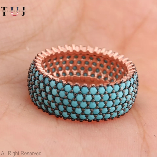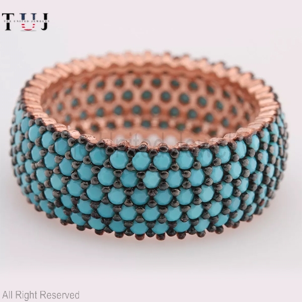 Specification: Turquoise Two Tone 5 Lines 925 Sterling Silver Band Ring